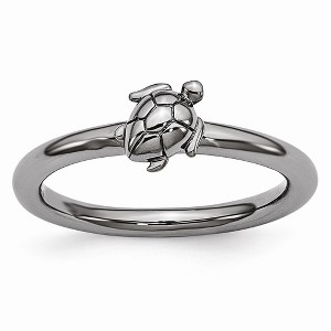 Product Name: Black Bow Jewelry Black Plated Sterling Silver Stackable 8mm Sea Turtle Ring