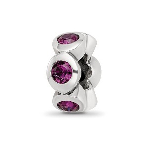 - Unique Features - Tell the story of the month of your birth with this simulated birthstone, 6 crystal charm. Vivid purple crystals gorgeously aligned around a sterling silver charm that measures approximately 11 x 4.5mm and features a 4mm center. Purple is the traditional birthstone color for the month of February. It is also interchangeable as well as compatible with Reflections and other popular 3mm width bead style bracelets and necklaces.