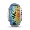 Capture the unforgettable moments of a past journey or keep your future travel dreams alive with this dichroic glass charm with sterling silver end caps. It features the name Hawaii, includes an image of palm trees at the end and is approximately 9mm in width by 13mm in length. Each dichroic glass charm is individually handmade so each piece will have slight variations in size, color and pattern. All of our charms have a 4mm core that is interchangeable as well as compatible with Reflections and other popular 3mm bead style bracelets and necklaces. Additional features include: dichroic glass design, sterling silver end caps; color range varies; approximate size 9 x 13mm with a 4mm core; fits most 3mm bracelets and necklaces.