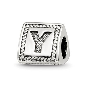 Black Bow Jewelry Triangle Block, Letter Y Sterling Silver Bead Charm