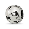 Create fashionable jewelry designs with this cat silhouette charm aimed to reflect your personality and lifestyle. Whether it is formal, casual, energetic or relaxed, this antiqued sterling silver bead will help tell your story. It measures approximately 9mm in width by 12mm in length with a 4mm core that is interchangeable as well as compatible with Reflections and other popular 3mm width bead style bracelets and necklaces. Additional features include: antiqued sterling silver design; approximate size 9 x 12mm with a 4mm core; fits most 3mm bracelets and necklaces; weight is approximately 2.15 grams.