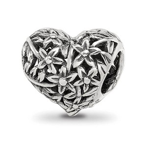 - Unique Features - Heart charms are great for any occasional and will add a touch of enthusiasm to a fashionable, special meaning or theme style design. This antiqued sterling silver charm features a filigree flower design that is approximately 12mm in width by 10mm in length. It has a 4mm core that is interchangeable as well as compatible with Reflections and other popular 3mm width bead style bracelets and necklaces.