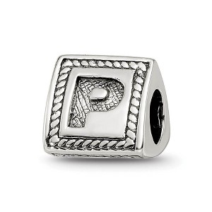 Black Bow Jewelry Triangle Block, Letter P Sterling Silver Bead Charm