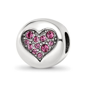 Product Name: Black Bow Jewelry Sterling Silver with Pink Crystals October Heart Hope Bead Charm