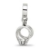 Unique designs begin with a single bead, unleash your creativity and have some fun! These sterling silver wedding rings measures roughly 9mm in diameter and dangles from a 9mm polished bead with a 4mm center. It is interchangeable as well as compatible with Reflections and other popular 3mm width bead style bracelets and necklaces. Additional features include: antiqued sterling silver design; rings measure roughly 9mm in diameter; bead hole measures 4mm in diameter; fits most 3mm bracelets and necklaces.