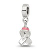 - Unique Features - Show your support and spread awareness for each person touched by breast cancer! This sterling silver, pink enameled ribbon measures roughly 11 x 8mm and dangles from an 8mm polished bead with a 4mm center. It is interchangeable as well as compatible with Reflections and other popular 3mm width bead style bracelets and necklaces.