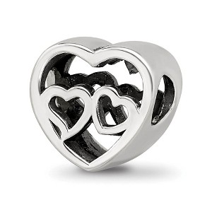 When love is in the air, celebrate with this polished and antiqued sterling silver charm featuring a two heart, one love design. It is approximately 10mm in width by 10mm in length and has a 4mm core. All of our charms are interchangeable as well as compatible with Reflections and other popular 3mm width bead style bracelets and necklaces. Additional features include: polished & antiqued sterling silver design; approximate size 10 x 10mm; bead hole is 4mm in diameter; fits most 3mm bracelets and necklaces.