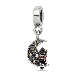 Product Name: Black Bow Jewelry Sterling Silver, Enameled Cat & Marcasite Moon Dangle Bead Charm