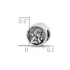 This spiritual charm cast in antiqued sterling silver features an angel with wings and measures approximately 10mm in diameter with a 4mm center. All of our charms are interchangeable as well as compatible with Reflections and other popular 3mm width bead style bracelets and necklaces. Additional features include: antiqued sterling silver design; measures roughly 10mm in diameter; bead hole measures 4mm in diameter; fits most 3mm bracelets and necklaces.