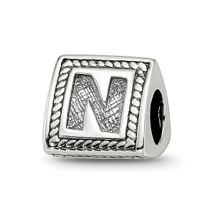Black Bow Jewelry Triangle Block, Letter N Sterling Silver Bead Charm