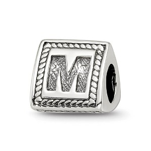 Black Bow Jewelry Triangle Block, Letter M Sterling Silver Bead Charm
