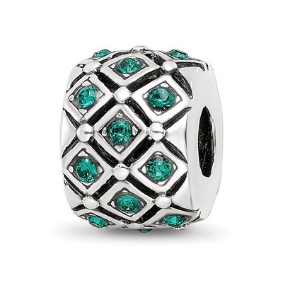 - Unique Features - Make your jewelry design twinkle and shine with this lattice designed simulated birthstone charm fashioned from sterling silver with white crystals. It measures approximately 8mm in width by 11mm in length. All of our simulated birthstone charms feature a 4mm bead hole that is interchangeable as well as compatible with other popular 3mm width bead style bracelets and necklaces.