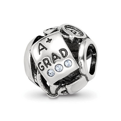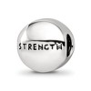 Add a chapter to your bead collection with a theme simulated birthstone charm designed to reveal your personal story. This sterling silver with light green crystals, cylinder style charm features a heart on the front and STRENGTH written in antiqued block letters on the back. It is approximately 11mm in width by 11mm in length and has a 4mm core that is interchangeable as well as compatible with other popular 3mm width bead style bracelets and necklaces. Will not fit Pandora bracelets. Additional features include: sterling silver and crystal design; approximate size 11 x 11mm with a 4mm core; fits most 3mm bracelets and necklaces; weight is approximately 2.46 grams.