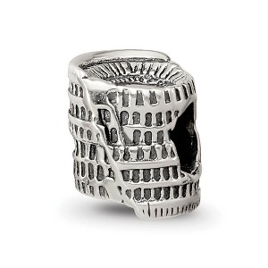 - Unique Features - Capture the unforgettable moments of a past journey or keep your future travel dreams alive with this antiqued sterling silver Colosseum charm. It features a detailed three-dimensional design that is approximately 8mm in width by 8mm in length and has a 4mm core. All of our charms are interchangeable as well as compatible with Reflections and other popular 3mm width bead style bracelets and necklaces.