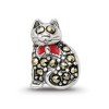 Black Bow Jewelry Sterling Silver, Enamel & Marcasite Cat with Red Bow Bead Charm
