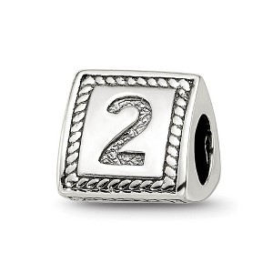 Product Name: Black Bow Jewelry Triangle Block, Number 2 Sterling Silver Bead Charm