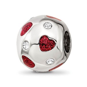 Product Name: Black Bow Jewelry Sterling Silver Red Glitter Enamel & Crystals Hearts Bead Charm