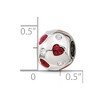 Heart charms are great for any occasional and will add a touch of enthusiasm to a fashionable, special meaning or theme style design. This polished charm fashioned from sterling silver with red glitter enamel and white crystals is approximately 12mm in width by 13mm in length. It has a 4mm core that is interchangeable as well as compatible with other popular 3mm width bead style bracelets and necklaces. Additional features include: sterling silver, glitter enamel and crystals design; approximate size 12 x 13mm with a 4mm core; fits most 3mm bracelets and necklaces; weight is approximately 2.82 grams.