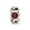 Tell your family story with this simulated birthstone charm to make it personal and unique. Red/green is the traditional birthstone color for the month of June. Three raspberry crystals crystals alternate between spiraling sterling silver designs on this stunning charm that measures approximately 11 x 5.5mm and features a 4mm center. It is also interchangeable as well as compatible with Reflections and other popular 3mm width bead style bracelets and necklaces. Additional features include: polished & antiqued sterling silver design; features raspberry crystals; measures approximately 11 x 5.5mm with a 4mm core; fits most 3mm bracelets and necklaces.