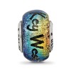 Capture the unforgettable moments of a past journey or keep your future travel dreams alive with this dichroic glass charm with sterling silver end caps. It features the name Key West, includes an image of palm trees at the end and is approximately 9mm in width by 13mm in length. Each dichroic glass charm is individually handmade so each piece will have slight variations in size, color and pattern. All of our charms have a 4mm core that is interchangeable as well as compatible with Reflections and other popular 3mm bead style bracelets and necklaces. Additional features include: dichroic glass design, sterling silver end caps; color range varies; approximate size 9 x 13mm with a 4mm core; fits most 3mm bracelets and necklaces.