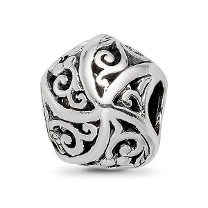 Create fashionable jewelry designs with this vining flower Bali charm aimed to reflect your personality and lifestyle. Whether it is formal, casual, energetic or relaxed, this antiqued sterling silver bead will help tell your story. It measures approximately 9mm in width by 11mm in length with a 4mm center that is interchangeable as well as compatible with Reflections and other popular 3mm width bead style bracelets and necklaces. Additional features include: polished & antiqued sterling silver design; approximate size 9 x 11mm; bead hole is 4mm in diameter; fits most 3mm bracelets and necklaces.