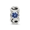 Tell your family story with this simulated birthstone charm to make it personal and unique. Deep blue is the traditional birthstone color for the month of September. Three crystals alternate between spiraling sterling silver designs on this stunning charm that measures approximately 11 x 5.5mm and features a 4mm center. It is also interchangeable as well as compatible with Reflections and other popular 3mm width bead style bracelets and necklaces. Additional features include: polished & antiqued sterling silver design; features deep blue crystals; measures approximately 11 x 5.5mm with a 4mm core; fits most 3mm bracelets and necklaces.