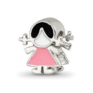 Product Name: Black Bow Jewelry Sterling Silver & Enameled Pink Dress Girl Bead Charm