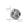 Spruce up your jewelry design with a beautiful, intricately detailed floral bead that nature inspired. This multi-colored accented flower charm is created from antiqued sterling silver with crystals and measures approximately 9mm in width by 11mm in length with a 4mm core. All of our charms are interchangeable as well as compatible with other popular 3mm width bead style bracelets and necklaces. Not compatible with Pandora bracelets. Additional features include: sterling silver and crystals design; approximate size 9 x 11mm; bead hole is 4mm in diameter; fits most 3mm bracelets and necklaces.