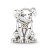 Convey your love for dogs with this irresistible puppy charm crafted from sterling silver with a yellow crystal accent collar. It measures approximately 9mm in width by 12mm in length and has a 4mm core that is interchangeable as well as compatible with other popular 3mm width bead style bracelets and necklaces. Additional features include: sterling silver & crystal design; approximate size 9 x 12mm with a 4mm core; fits most 3mm bracelets and necklaces; weight is approximately 2.63 grams.