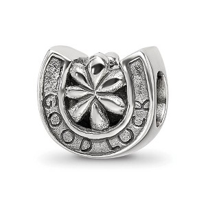 - Unique Features - Unleash your creative imagination to customize a one-of-a-kind jewelry design. This Good Luck horseshoe charm fashioned from antiqued sterling silver will add a pinch of luck and western style to your collection. It is approximately 9mm in width by 9mm in length and has a 4mm core that is interchangeable as well as compatible with Reflections and other popular 3mm width bead style bracelets and necklaces.