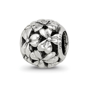 Product Name: Black Bow Jewelry Sterling Silver Antiqued Openwork Flower Bead Charm