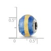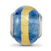 Genuine Italian Murano glass known for its quality and form uses refined techniques that are unmatched anywhere in the world. This hand-blown, blue and golden striped charm polished to a lustrous finish measures roughly 15mm in diameter with a 4mm center. All of our glass charms are interchangeable as well as compatible with Reflections and other popular 3mm width bead style bracelets and necklaces. Additional features include: genuine murano glass with a sterling silver end caps; measures roughly 15mm in diameter with a 4mm core; handcrafted glass may vary slightly in color and pattern; fits most 3mm bracelets and necklaces.