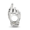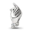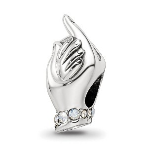 Add a chapter to your bead collection with theme charms designed to reveal your personal story and celebrate special events. This mother and child hands charm made from antiqued sterling silver with clear crystals. It is approximately 9mm in width by 15mm in length and has a 4mm core. All of our charms are interchangeable as well as compatible with other popular 3mm width bead style bracelets and necklaces. Additional features include: antiqued sterling silver with crystals design; approximate size 9 x 15mm with a 4mm core; fits most 3mm bracelets and necklaces; weight is approximately 2.11 grams.