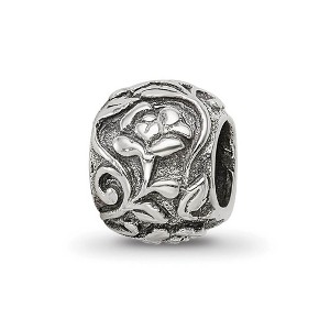 - Unique Features - Spruce up your jewelry design with a beautiful, intricately detailed floral bead that nature inspired. Created from sterling silver with a popular, dual finish, this floral charm measures approximately 10 x 9mm with a 4mm core. All of our charms are interchangeable as well as compatible with Reflections and other popular 3mm width bead style bracelets and necklaces.