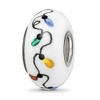 - Unique Features - Each meticulously hand-blown hand-painted Fenton glass charm is initialed by the artist and finished with a ceramic glaze and a sterling silver core embossed with Fenton USA! This white charm features a reindeer and string of lights design that is approximately 8mm in width by 15mm in length. Fenton Made in America handcrafted glass beads are compatible with and will fit most major brand, 3mm width, bead style bracelets and necklaces. Colors and size may vary slightly.