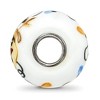 Each meticulously hand-blown hand-painted Fenton glass charm is initialed by the artist and finished with a ceramic glaze and a sterling silver core embossed with Fenton USA! This white charm features a reindeer and string of lights design that is approximately 8mm in width by 15mm in length. Fenton Made in America handcrafted glass beads are compatible with and will fit most major brand, 3mm width, bead style bracelets and necklaces. Colors and size may vary slightly. Additional features include: handcrafted glass & sterling silver design; officially licensed and made in the u.s.a.; approximate size 8 x 15mm; weight is approximately 1.99 grams.