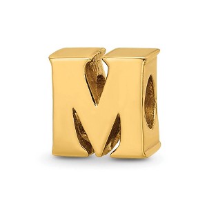Black Bow Jewelry Letter M Bead Charm in 14k Yellow Gold Plated Sterling Silver