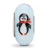 Each meticulously hand-blown hand-painted Fenton glass charm is initialed by the artist and finished with a ceramic glaze and a sterling silver core embossed with Fenton USA! This light blue charm features a frolicking penguin design that is approximately 8mm in width by 15mm in length. Fenton Made in America handcrafted glass beads are compatible with and will fit most major brand, 3mm width, bead style bracelets and necklaces. Colors and size may vary slightly. Additional features include: handcrafted glass & sterling silver design; officially licensed and made in the u.s.a.; approximate size 8 x 15mm; weight is approximately 2.15 grams.