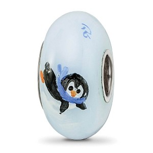 Product Name: Black Bow Jewelry Fenton Sterling Silver Hand Painted Penguin Frolic Glass Bead Charm