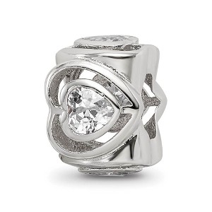 Black Bow Jewelry Sterling Silver Clear Cubic Zirconia Four Sided Dbl Heart Bead Charm