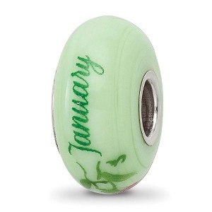 - Unique Features - Each meticulously hand-blown hand-painted Fenton glass charm is initialed by the artist and finished with a ceramic glaze and a sterling silver core embossed with Fenton USA! This green charm features the word January and a carnation floral design that is approximately 8mm in width by 15mm in length. Fenton Made in America handcrafted glass beads are compatible with and will fit most major brand, 3mm width, bead style bracelets and necklaces. Col...See description for more