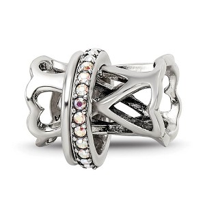Black Bow Jewelry Sterling Silver with White Crystals Heart Spinner Bead Charm