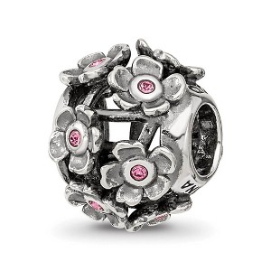 Product Name: Black Bow Jewelry Sterling Silver with Pink Crystals Pink Blossoms Bead Charm