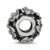 Spruce up your jewelry design with a beautifully detailed blossom bead that nature inspired. It is created from antiqued sterling silver with pink crystals and measures approximately 10mm in width by 12mm in length with a 4mm core. All of our charms are interchangeable as well as compatible with other popular 3mm width bead style bracelets and necklaces. Additional features include: antiqued sterling silver and pink crystals design; approximate size 10 x 12mm with a 4mm core; fits most 3mm bracelets and necklaces; weight is approximately 2.33 grams.