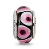 Artistic glasswork charms with unique, creative designs are available in a variety of amazing colors and because they are hand-blown, no two pieces will be exactly alike. Measuring 13.25mm in diameter, this gorgeous black and pink charm with its lustrous finish features a 4mm core that is interchangeable as well as compatible with Reflections and other popular 3mm width bead style bracelets and necklaces. Additional features include: crafted from hand-blown glass and sterling silver; measures 13.25 in diameter with a 4mm center; color range varies; no two pieces will be exactly alike; fits most 3mm bracelets and necklaces.