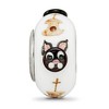 Each meticulously hand-blown hand-painted Fenton glass charm is initialed by the artist and finished with a ceramic glaze and a sterling silver core embossed with Fenton USA! This white charm features a three dimensional cat and fiddle design that is approximately 8mm in width by 15mm in length. Fenton Made in America handcrafted glass beads are compatible with and will fit most major brand, 3mm width, bead style bracelets and necklaces. Colors and size may vary slightly. Additional features include: handcrafted glass & sterling silver design; officially licensed and made in the u.s.a.; approximate size 8 x 15mm; weight is approximately 1.88 grams.