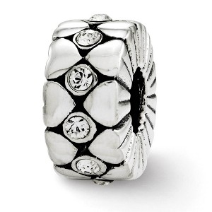 Product Name: Black Bow Jewelry Sterling Silver with White Crystals Heart Spacer Bead Charm