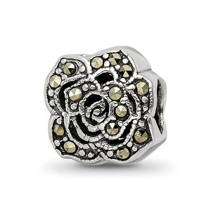 Product Name: Black Bow Jewelry Sterling Silver & Marcasite Antiqued Flower Bead Charm