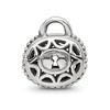 Add a chapter to your bead collection with theme charms designed to reveal your personal story and celebrate special events. This filigree padlock charm made from polished and antiqued sterling silver is approximately 11mm in width by 12mm in length and has a 4mm core. All of our charms are interchangeable as well as compatible with Reflections and other popular 3mm width bead style bracelets and necklaces. Additional features include: polished & antiqued sterling silver design; approximate size 11 x 12mm with a 4mm core; fits most 3mm bracelets and necklaces; weight is approximately 1.96 grams.