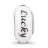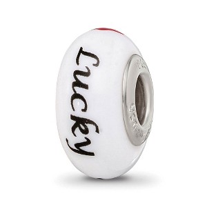 - Unique Features - Each meticulously hand-blown hand-painted Fenton glass charm is initialed by the artist and finished with a ceramic glaze and a sterling silver core embossed with Fenton USA! This white charm features the word Lucky and playing card suit design that is approximately 8mm in width by 15mm in length. Fenton Made in America handcrafted glass beads are interchangeable as well as compatible with other popular 3mm width bead style bracelets and necklace...See description for more